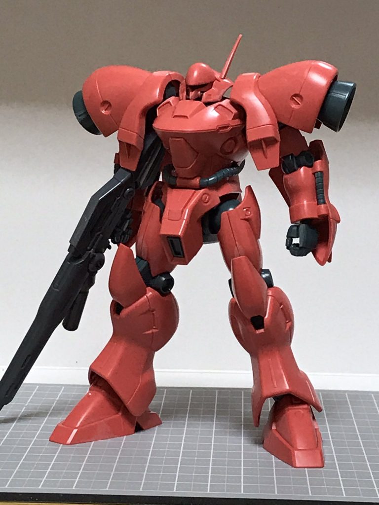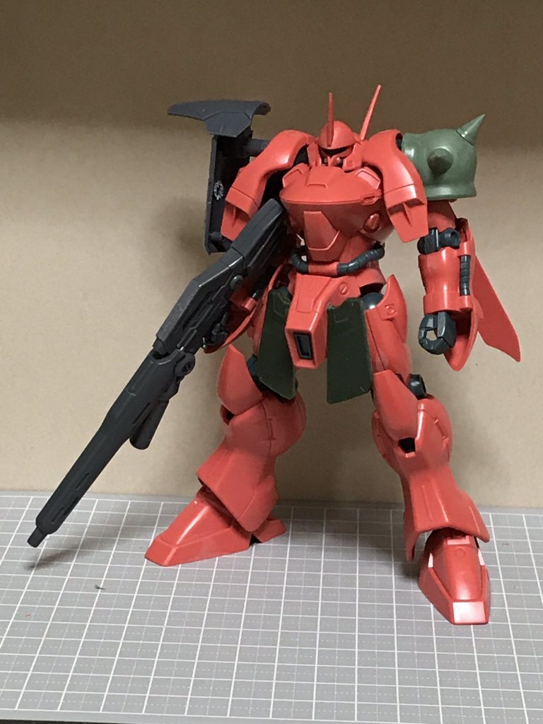 そうですね、曲線主体の機体なのでピンクのイメージがあるガーベラにも、ジオン風の配色が似合いますね! ネオジオン所属というのは塗ってからくっつけた設定です。