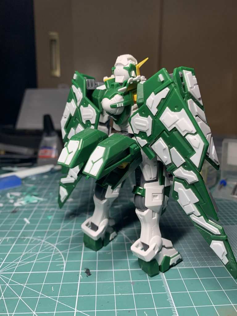 プラ板加工、スジボリを追加し、青や赤は淡く仕上げました。