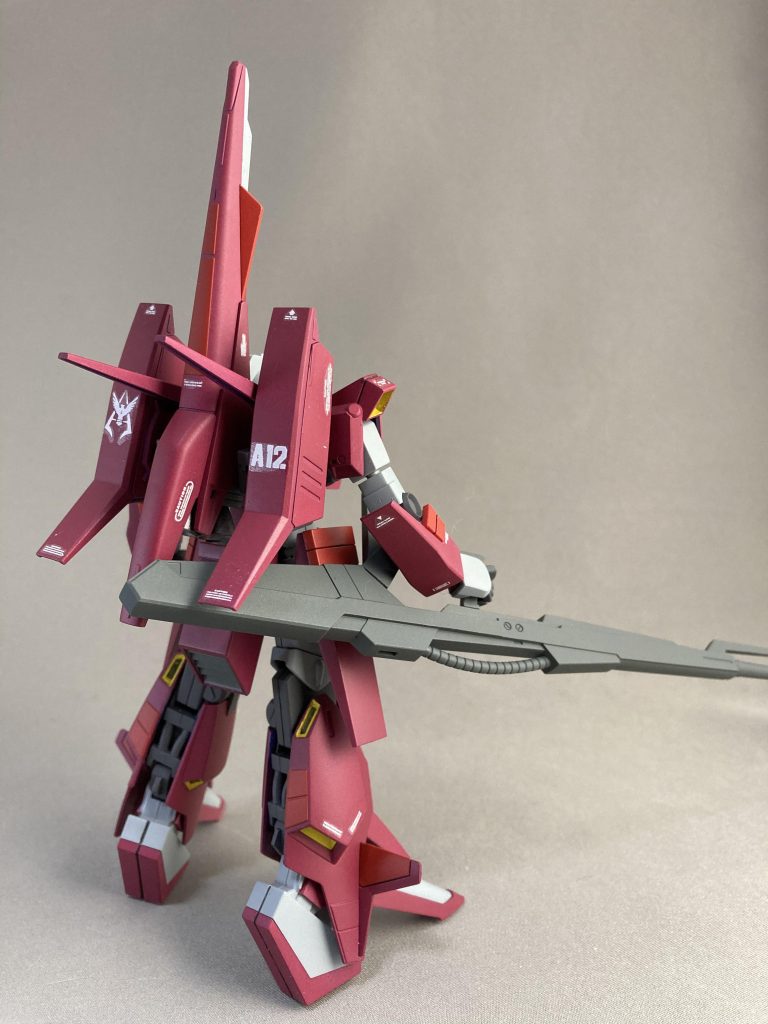 この色だと、リックディアスと百式の両方の特徴を合わせた、っぽい感じが出るので、個人的にはサザビーレッドよりも機体の性質に合っている気がします。