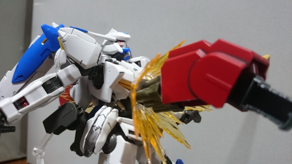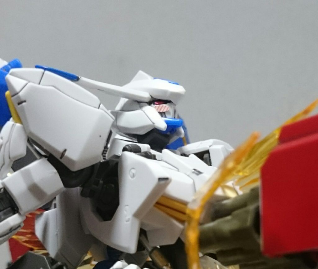 顔のシールはHGBFガーベラ・テトラ(専用機)に付属しているフェニーチェリナーシタ用のものを使用。……正直自分でも何故こんなことをしたのかがワカラナイ