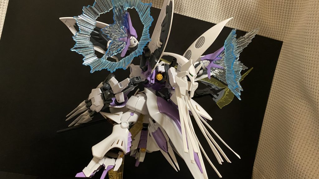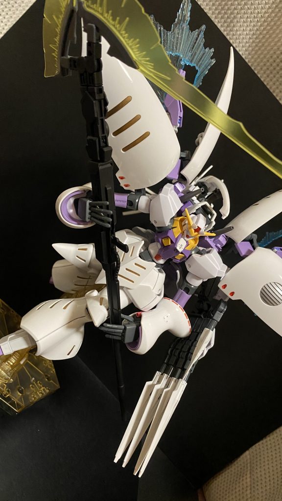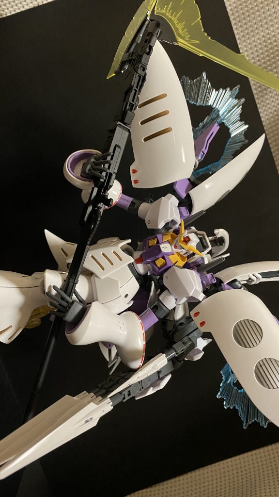 本機はキュベレイをベースにした、太陽炉搭載機。粒子の色は、薄紫色という設定。