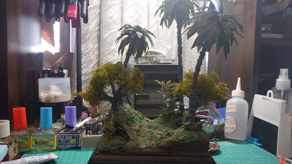 三十朗 HG 2020.12/09更新 密林を行く 1456 25 いいねしたモデラー(25) 1 3 作品を共有 木々をかき分けながらジャブローの密林を進攻するグフをイメージして製作しました。 HGUCグフ(21stCENTURY REAL TYPE Ver)をミライトを使いモノアイを発行させました。バズーカ、シールドは、システムウェポンシリーズのモノを使用。 ヤシの木は3ミリパイプにサイズの違う針金をぐるぐる巻きにして、フローラ―テープを巻き、モデリングペーストを塗りました。 ヤシの葉はクレープペーパーを切り出し造花用の針金に接着。ヤシの木一本当たり35~40枚ほど使用。 配置チェック。木もヤシの木と同じようにして製作。 HGUC グフ ジオラマ グフ…いいよね。 コメント コメントをして応援しよう コメントにはログインが必要です 74120’5 5年前 ファーストでジャブロー侵攻に参加してたグフは青だったけど、ジャングル戦なら間違いなくリアルタイプカラーの方が理にかなってますね。しかもトーンを更に抑えたこのカラーは状況に更にマッチしてますね! 三十朗 7 HGBF ヴァイスシナンジュ HGBF ヴァイスシナンジュです。 当初の想定より青味が強く… 9 HGUC Zガンダム(ウェーブシューター)3号機カラー ウェーブシューターの大気圏突入機能を排除し大気圏内での飛行性… 14 蒼風襲撃 打ち尽くしたショットガンを捨て背中のジャイアントバズを装備し… 9 HGUC ザク (ザク地上戦セットより) HGUC ザク地上戦セットのザクを製作しました。 三十朗さんのページ この作品をお薦め作品に設定する Please login to update your profile! Please login to update your profile! Please login to update your profile! Please login to update your profile!