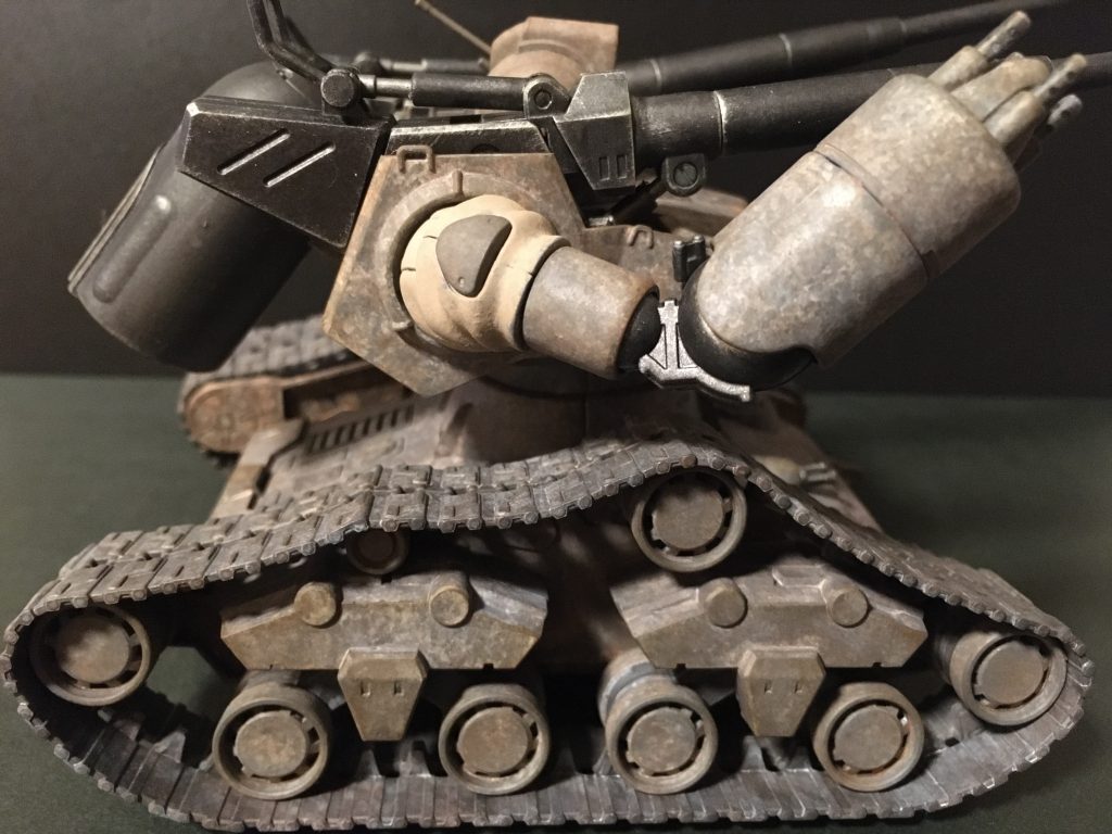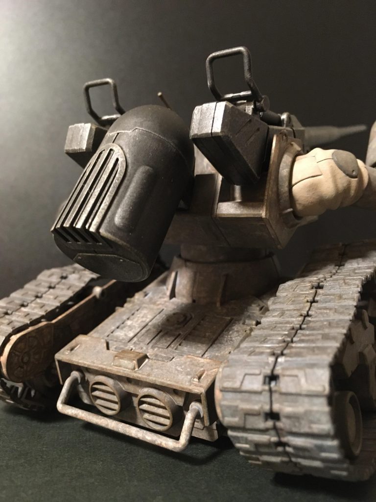 キャノン砲、背中のタンク、関節部分は新水性ホビーカラーの黒鉄色(シルバーでドライブラシ)。つや消しトップコートのおかげでいい感じに本体とマッチしてるような気が勝手にしております!
