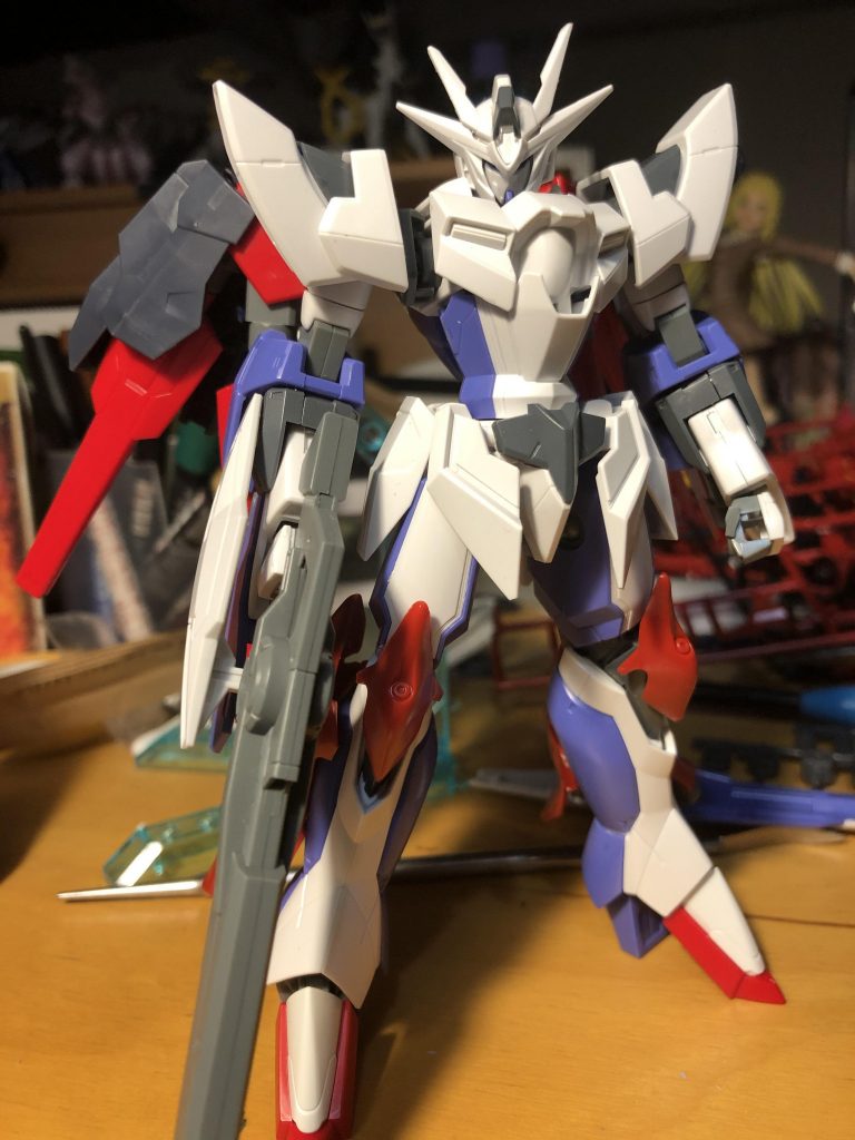 主な武装はGNバスターライフルⅡ、フィンファング、肘のGNビームサーベルとオリジナル武装のGNシールドバレル。