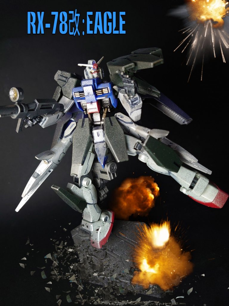 本機体は、RX-78改:Eagleである。地上戦闘に特化したRX-78改:Falconに対して、このEagleは空間戦闘に特化された。また、その過剰までのスラスター推力を生かして、大気圏内では、高度上空からのスカイダイビング強襲を行い、地上戦闘では短時間飛行による三次元移動を可能とする。