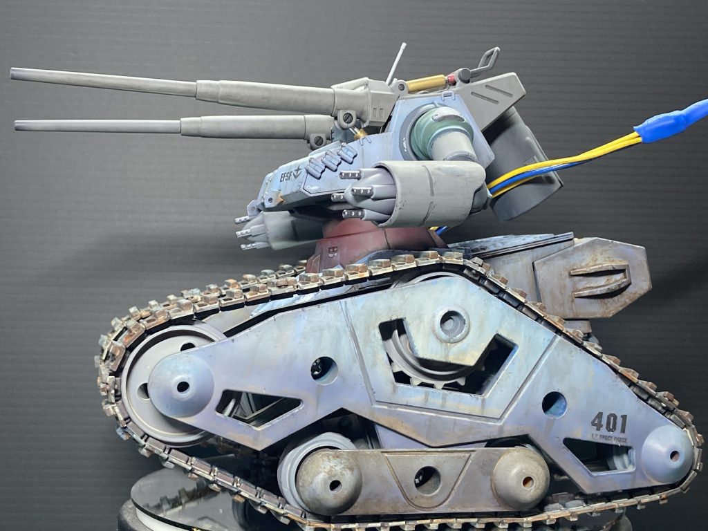 ガンダムオリジンのガンタンク初期型とタミヤのツイストクローラーをミックスして動くガンタンクを作りました。ウェザリングにも初挑戦!作成過程などはYoutubeにあげてます。