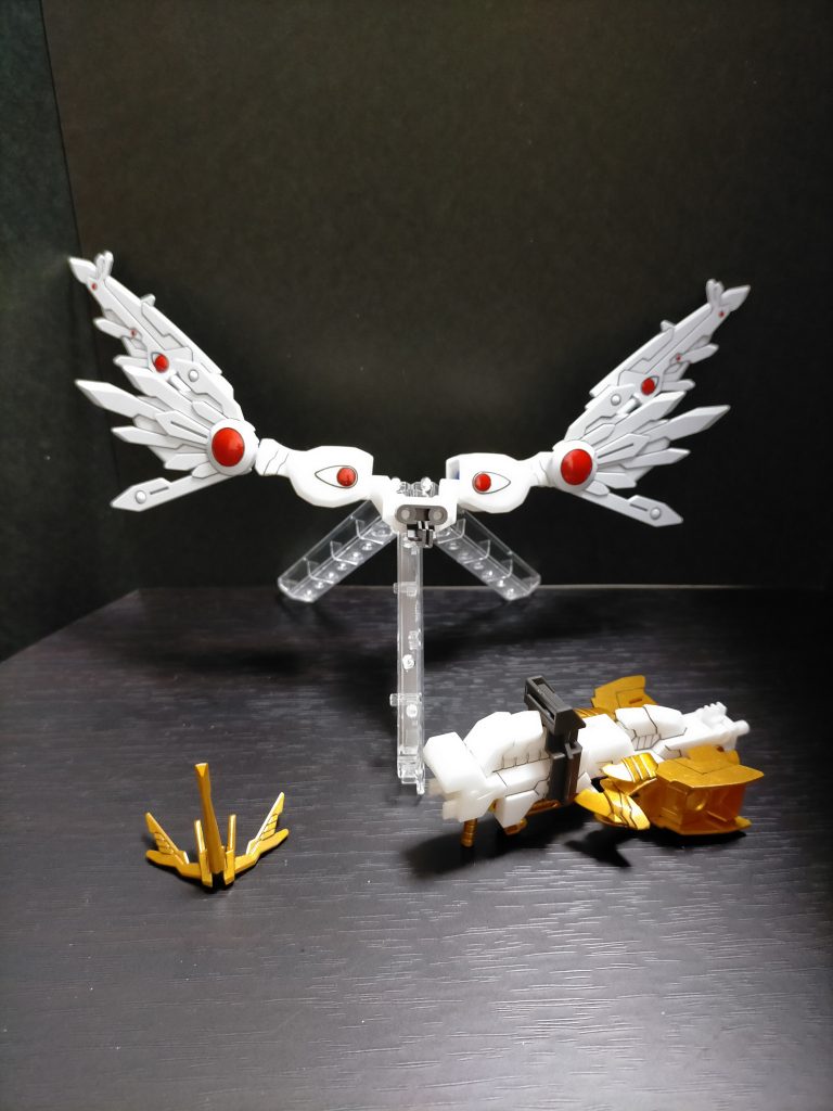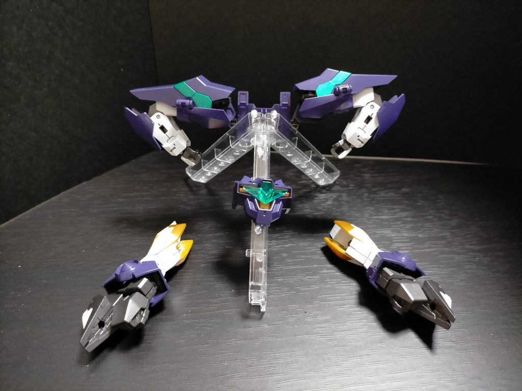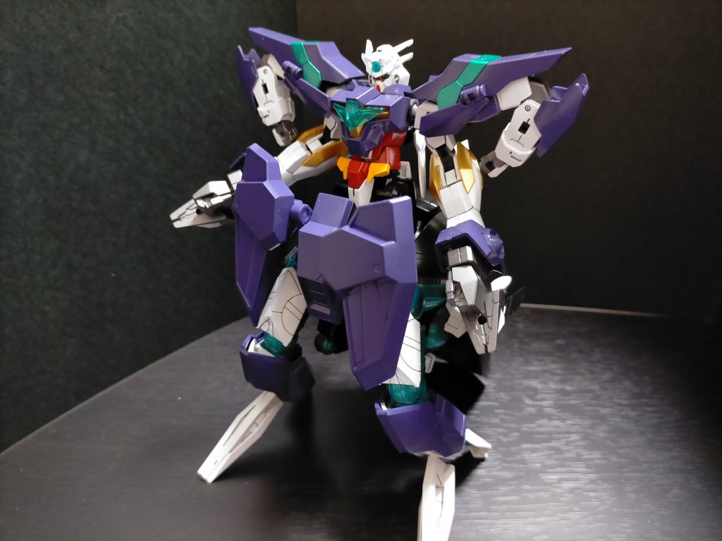ビルドダイバーズリライズよりopのタイトル背景の石版に描かれいた機体!リライジング ガンダム!流石に4機合体なのででかいです!イージスナイトとウォドムポッドの紫を同じ色にしたのでうまいことまとまった感がでて良かったです。写真の都合上トップ画像は機体正面用に撮影したものです。