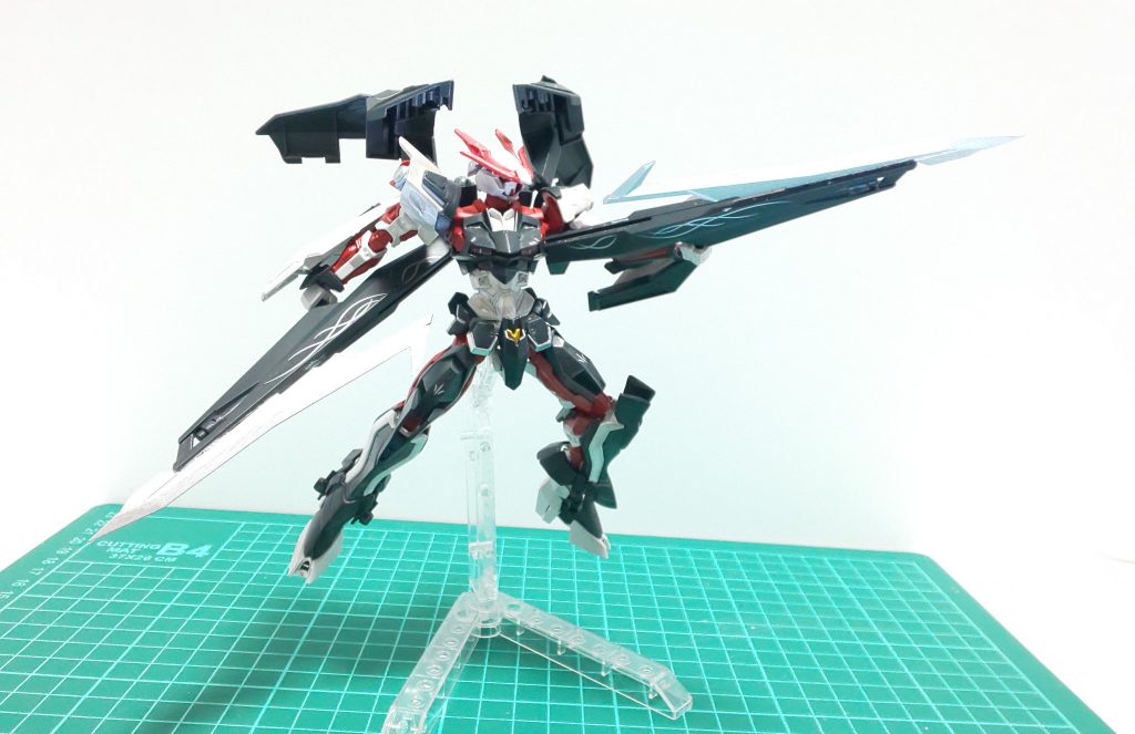 ダブルオースカイと同じように近接格闘をしやすいように肩にあった武装をバックパックと一体型にしてみました。