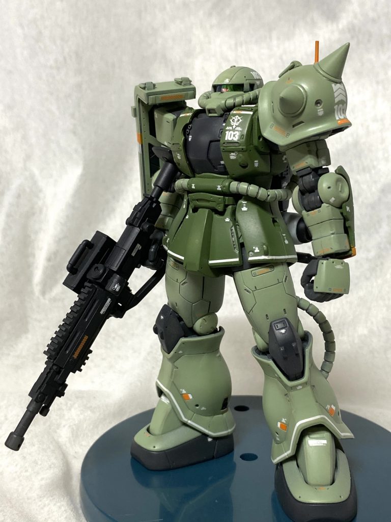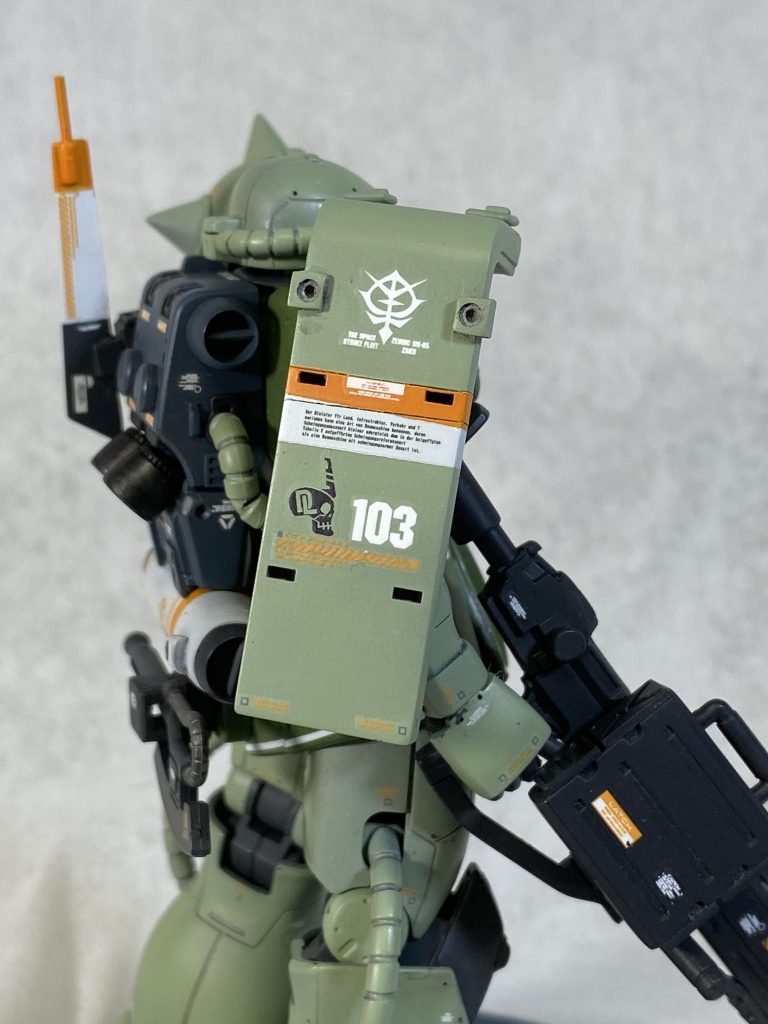 普通のザクが欲しかったので前面はそのまま、バックパックと武装にオリジナリティを盛ってみました。