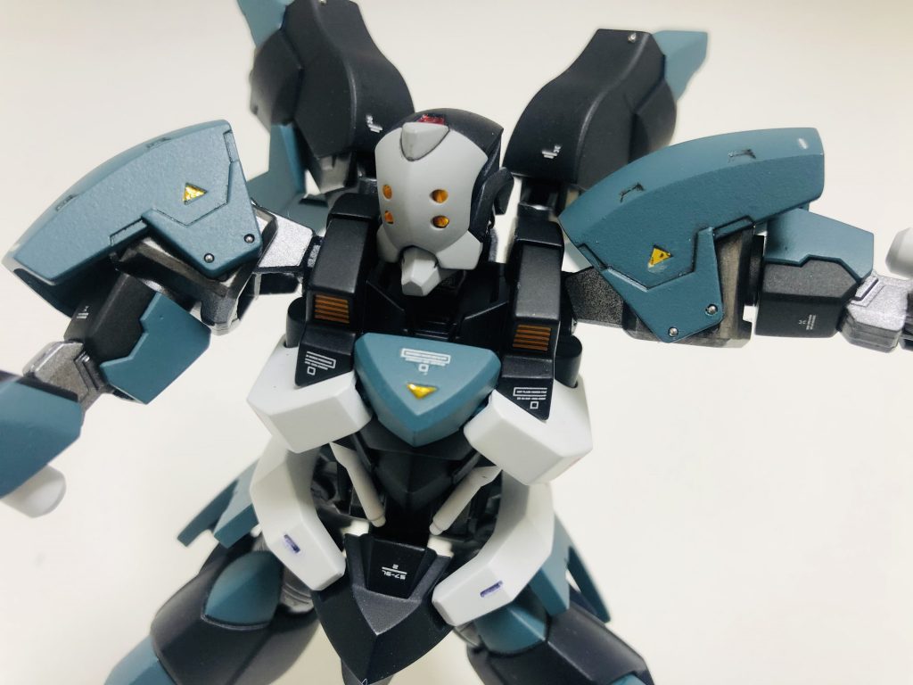汚してみました。胸部分、白いところをプラ板で少し前に延長して…