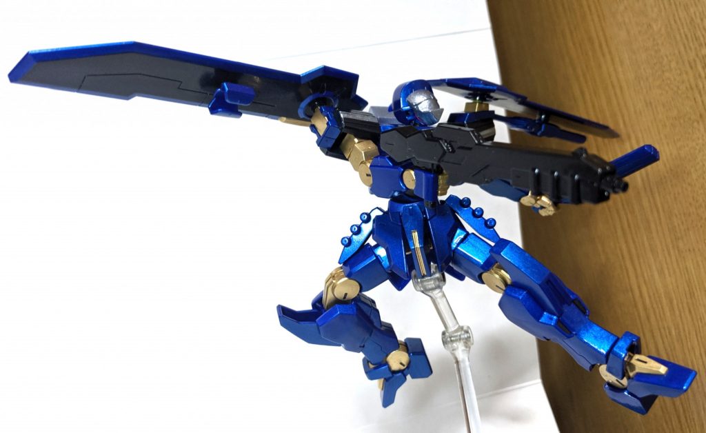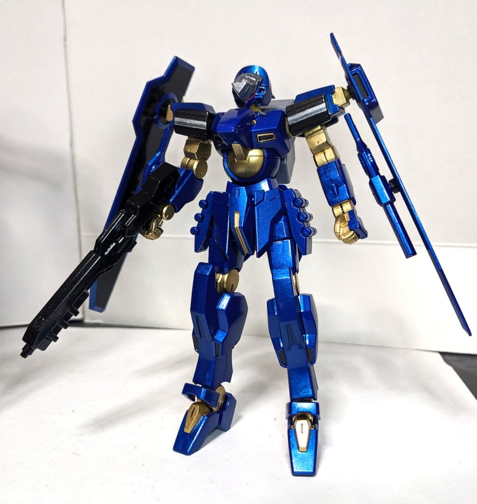 基本的に青成型色パーツをメタリックブルーで塗り、黄銅色のような成型色パーツをゴールドで塗装、その他の部位はシルバーやメタルブラックで塗装することでこの様な見た目になる。