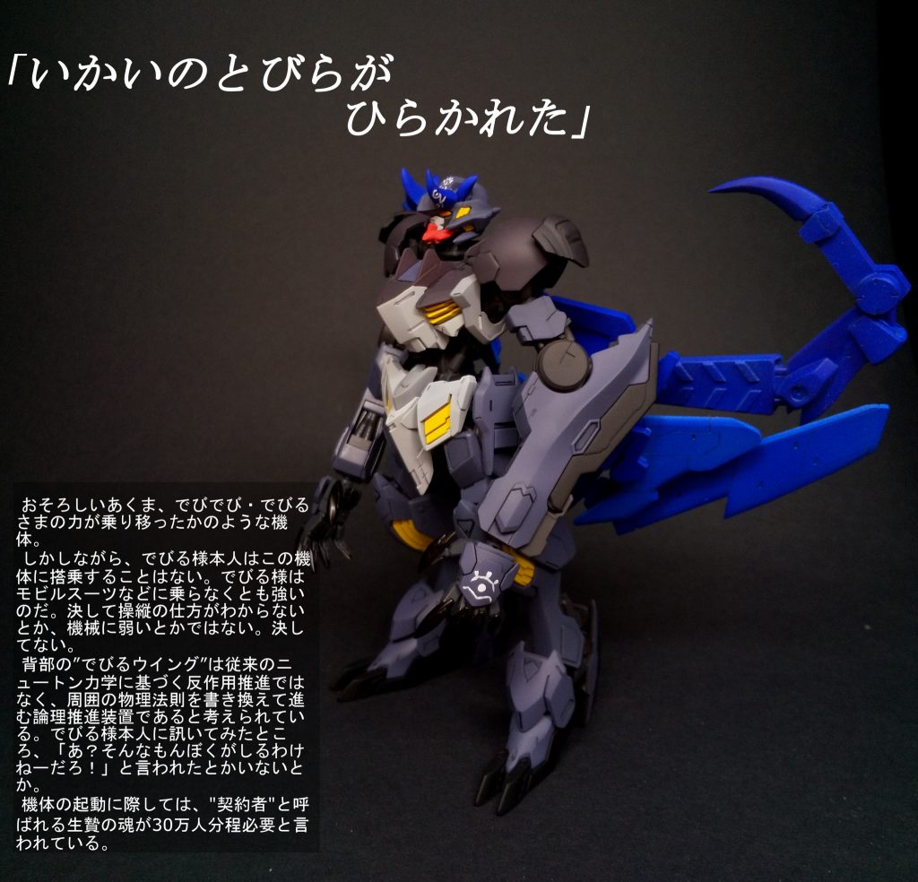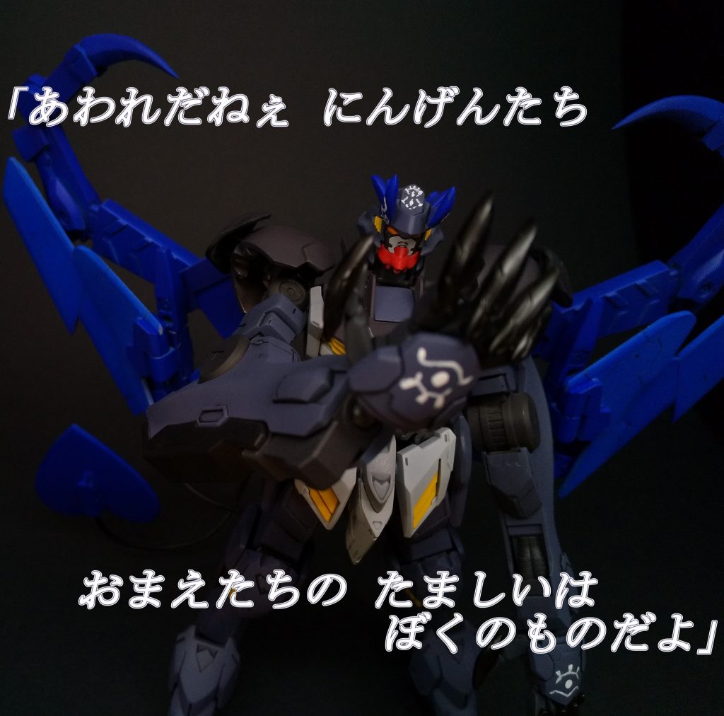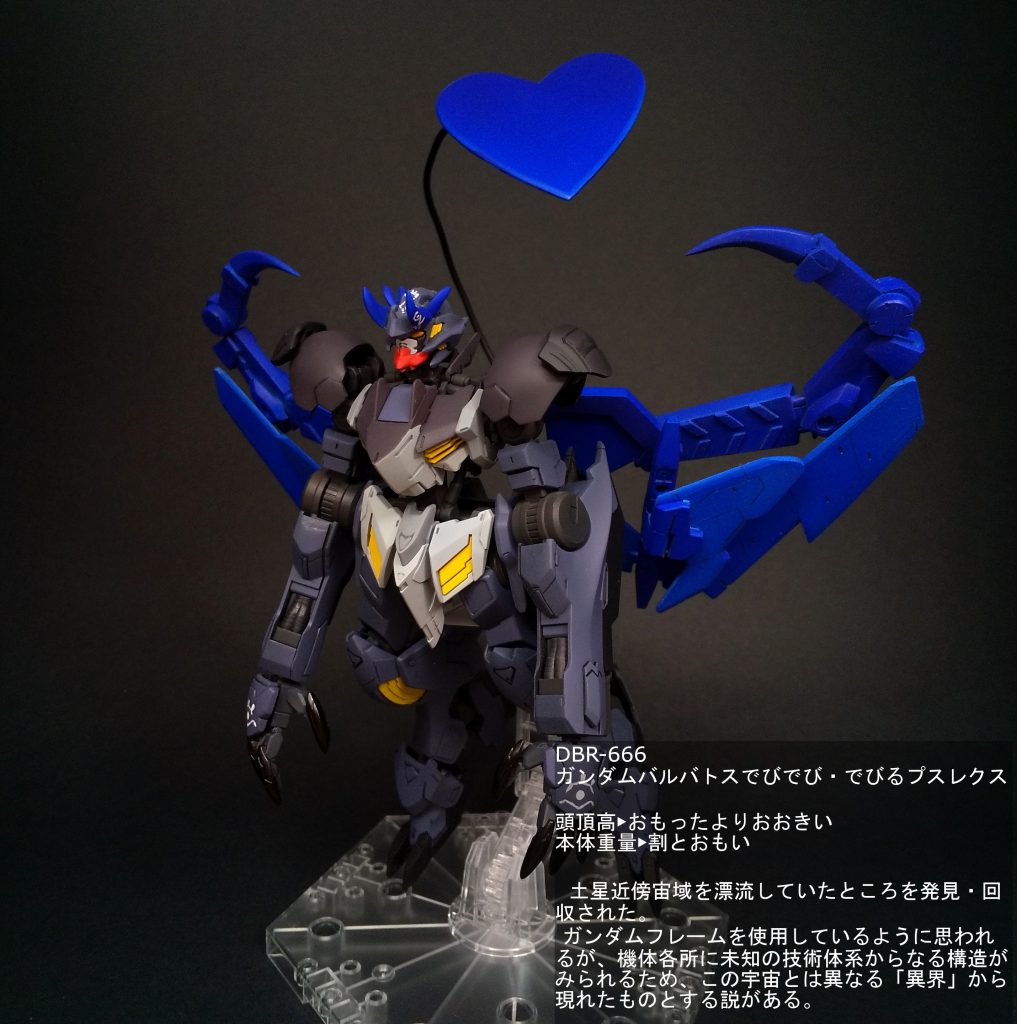 本体はほとんどHGバルバトスルプスレクスのままです。頭部のツノをでび様仕様に作り変えている程度の変更です。