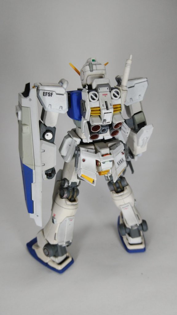 RX-79ということは陸戦型ガンダムの系譜という設定なのでしょうが、カラーリングやスタイリングなど、アレックスとトリスタンの中間に位置するNT-1系のように見えました。