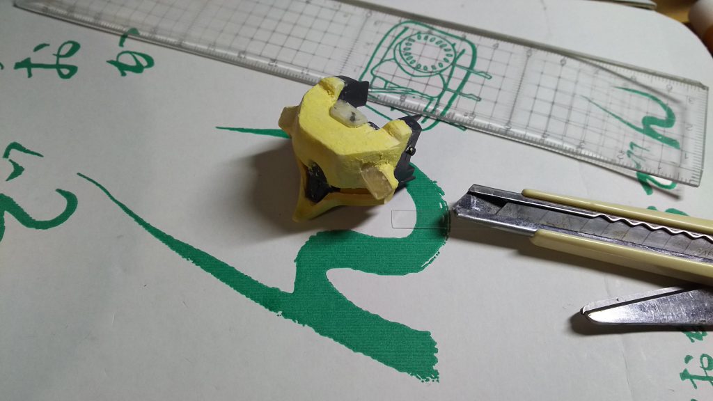 建機バーザムよろしく胸筋を盛ったり、肩や背面にクリアランナーのタグを刻んで貼り付けたりしました。