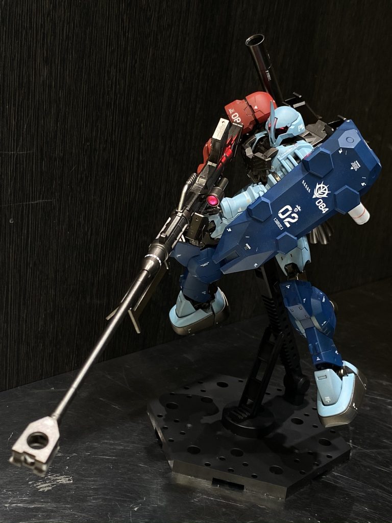 ボディのベースはザクⅠ、そこにヅダ、アスタロトオリジン、グリムゲルデ、バックパックにシナンジュスタインとビルド系のカスタムパーツをミキシングしました!