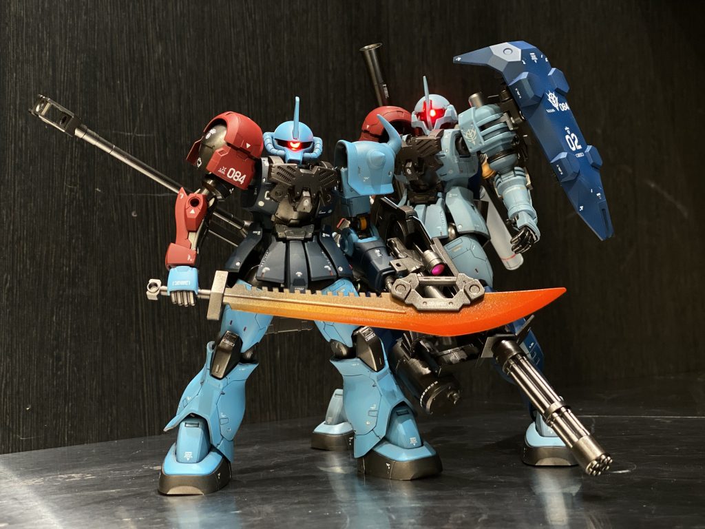 近距離戦闘を得意とする1番機グフカスタムT型、長距離支援を得…