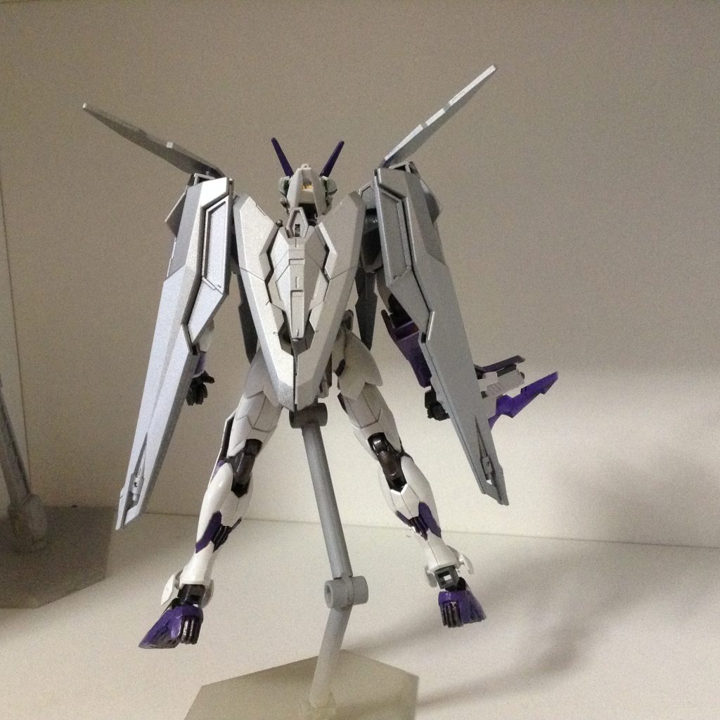 後付けの強化パーツっぽさを出したくてダブルリベイクライフルなどはシルバーで塗装しています。白と紫だと一体化し過ぎると思ったので‥。