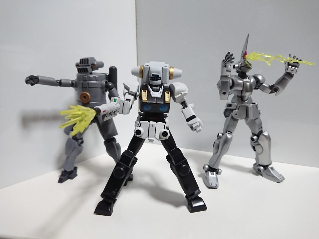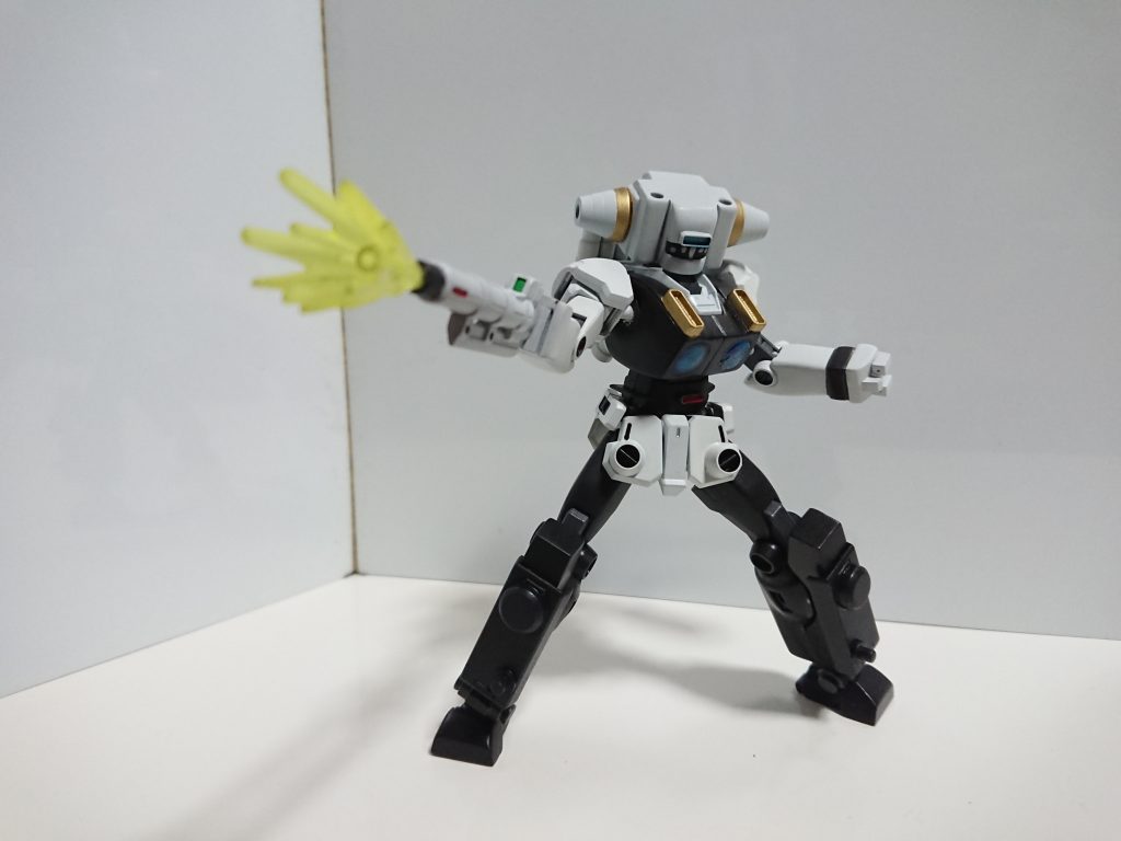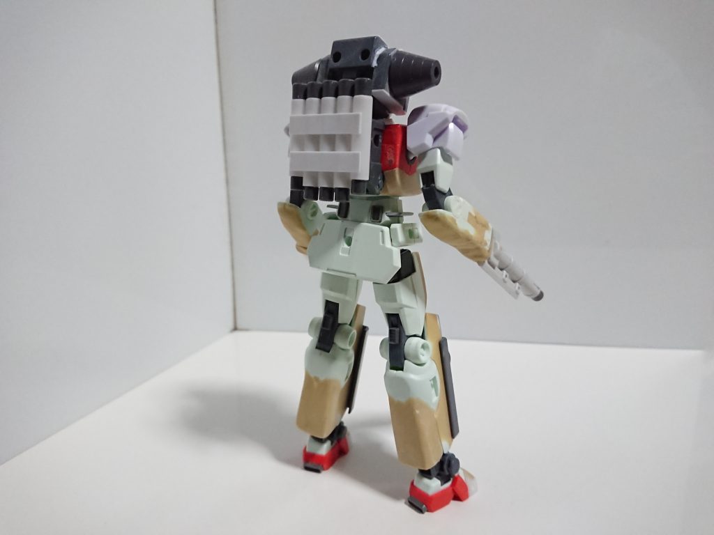 上半身の接続をどうしようかと一番頭を悩ませた形態。足にピンをつけて背中のバックパック穴に付けれるようにしました。