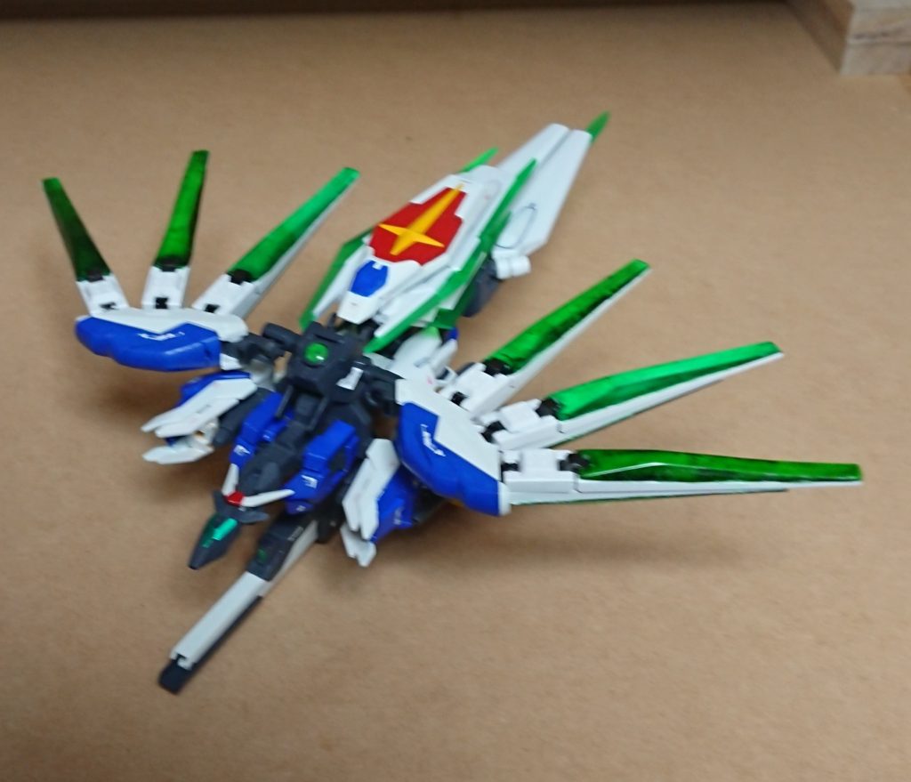 右腕にGNソードⅥ、左腕にGNビームガン・GNビット・GNシールド、背部にはGNフィンファンネル・GNビームサーベルを装備している。