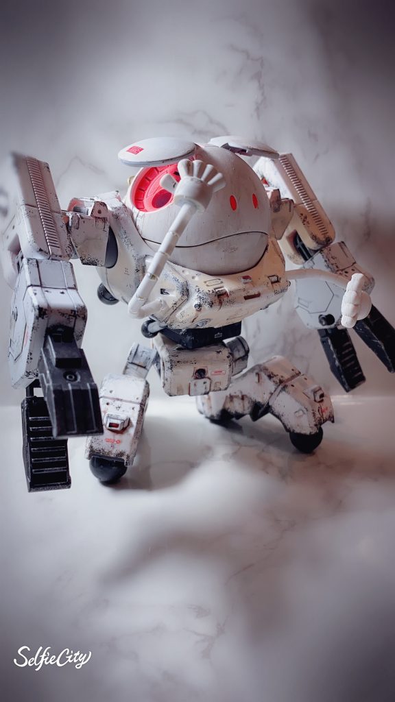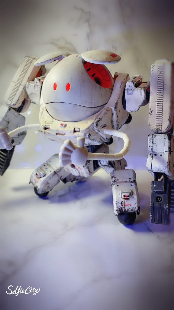 大型のクランプアームだけだと不便そうなのでハロ本体と同型のマニュピレーターをサブアームとして装備。脚部は高低にも対応出来るよう関節を追加するなど、一層の作業効率向上を目的としたカスタム機体です。