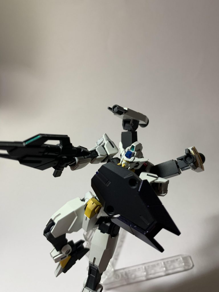 まずはこの機体の最大の特徴であるバックパックですが名前は「ヴァーサタルビット」です。これはビーム砲、加速用のユニットであり、ビットにもなる対応性に長けた装備で、地上戦ではビットとして使うことは出来ないので固定砲台として使用します。さらにビットということで今回も前回のアステルと同様ハロがいます。(ちなみに接続アームとビットフルスクです…)