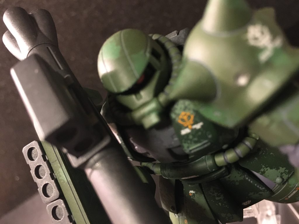 オリジン版ザクⅡ、筆塗り&スポンジを使った迷彩塗装です