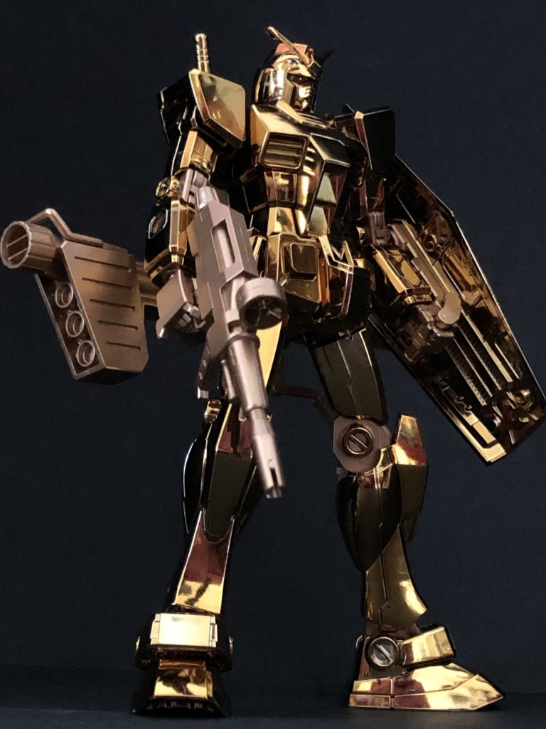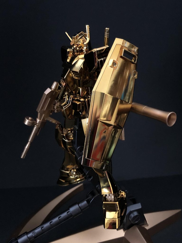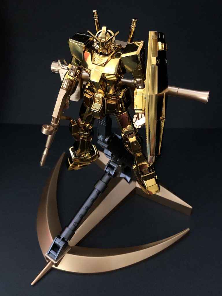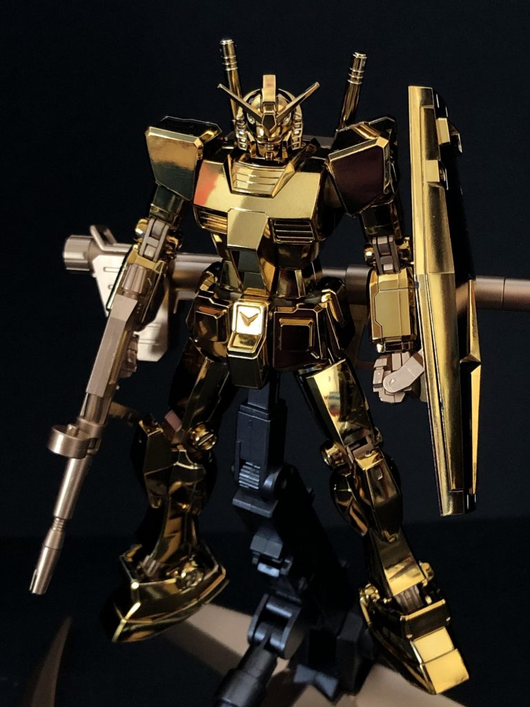 年末にガンダムベース福岡でポイント交換した、HG RX-78-2 ガンダム ゴールドコーティングバージョンです。おめでたい色なので、年始のご挨拶代わりに投稿させていただきます。