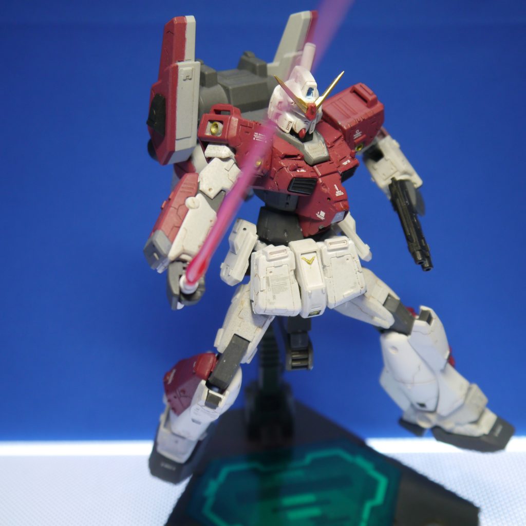 ジムカラーと言えばジムカラーですけど、アレックスが混ざっているからかクリスのノーマルスーツカラーにも見え、アムロ用という設定だったアレックスとは別に、クリス用の機体が用意されていた設定のようにも見えました。