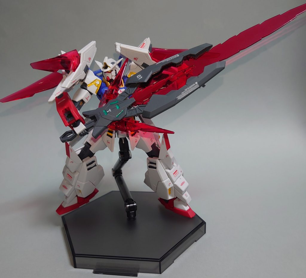 最初、赤のクリアパーツは派手すぎるかなぁ・・と思っていたのですが、いざ組んでみるとトリコロールに良くあっていて気に入りました。