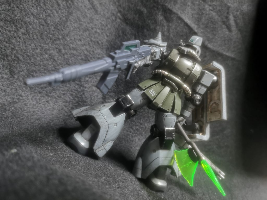 脚はオリジンドム、それ以外はオリジンザクでミキシング、頭部のデコレーションと武装はジャンクから持ってきました。