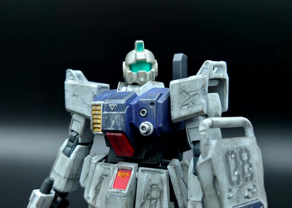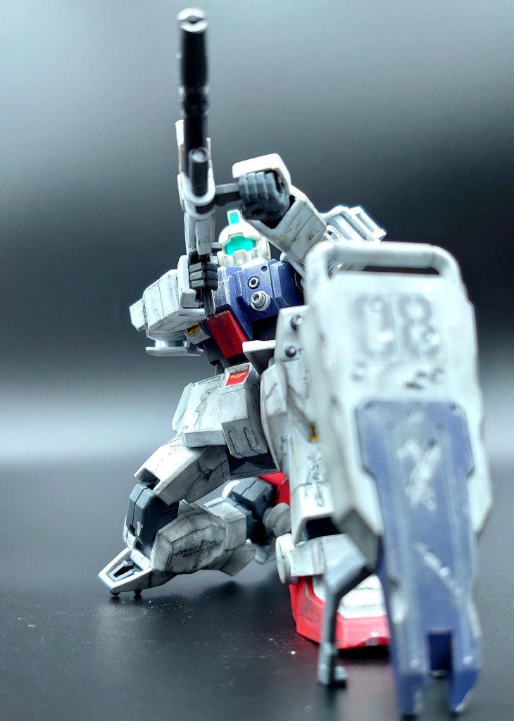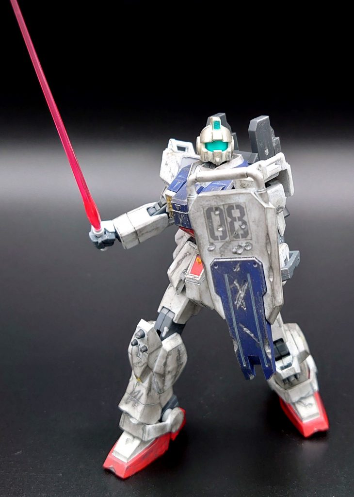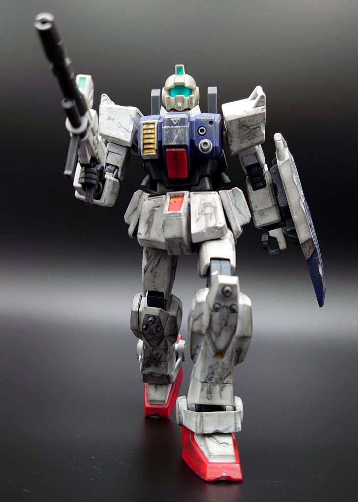 アニメだと頭部だけ色味が違ってとってつけた感じでしたが、色を揃えてやれば陸戦型ジムの発展型として、正規にこの仕様もあったような感じになりますね。