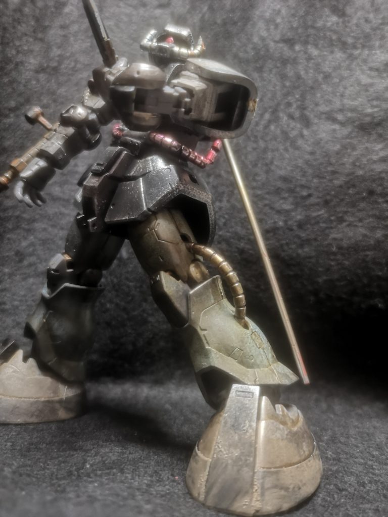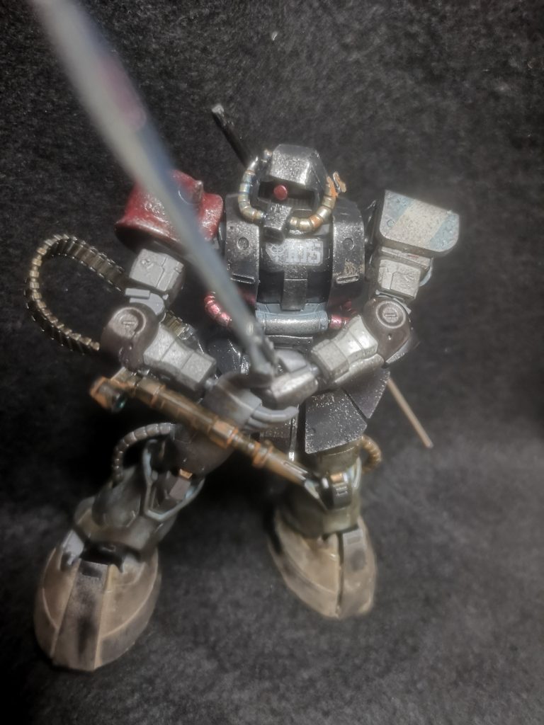 本デザインはある地球方面軍所属パイロットが駆るザクをベースにドムの足と左肩を装備している。