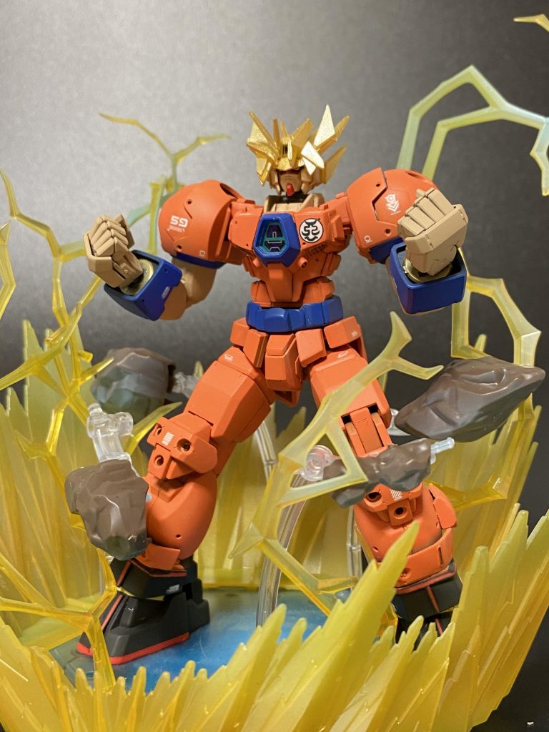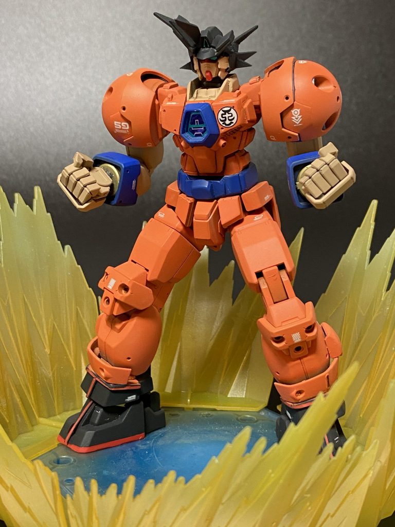 はじめまして。悟空の髪型をガンダムに上手く落とし込んでますね。(笑) 一番怒る時はやはり「クリリンの事か!」でしょうか?😭