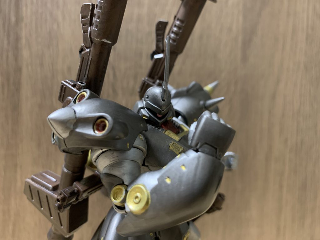 ケンプファーってデザインが甲虫っぽいテイストだから、オーラバトラーに似た雰囲気だな、と以前から思っていたのですが、このボディカラーはズワース的ですねー!