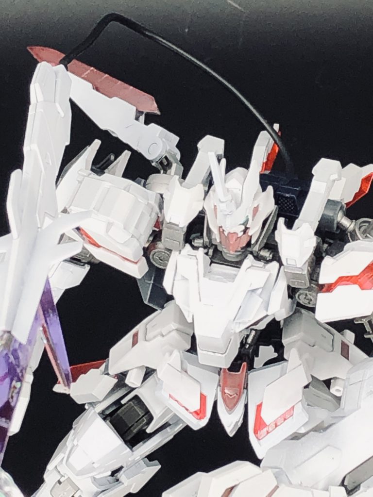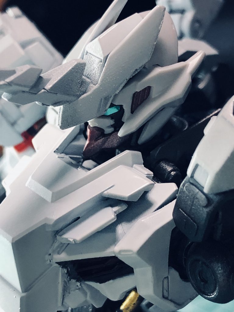 ありがとうございます! 頭部についてはMGユニコーンの閉じアンテナがたらふく余っていたので、バルバトスのアンテナの両脇をカットしてそこに接着してみました。ほかはまんまバルバトスですね。