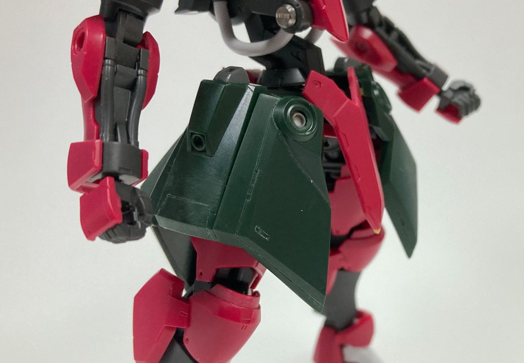 アンテナ、背中の突起、腰アーマーの各先端部はパテやプラ板を足してピンピンに尖らせています。あと実は肩アーマーの鍔部分は元のままだとクセが強かったので、結構削って形を調整しています。