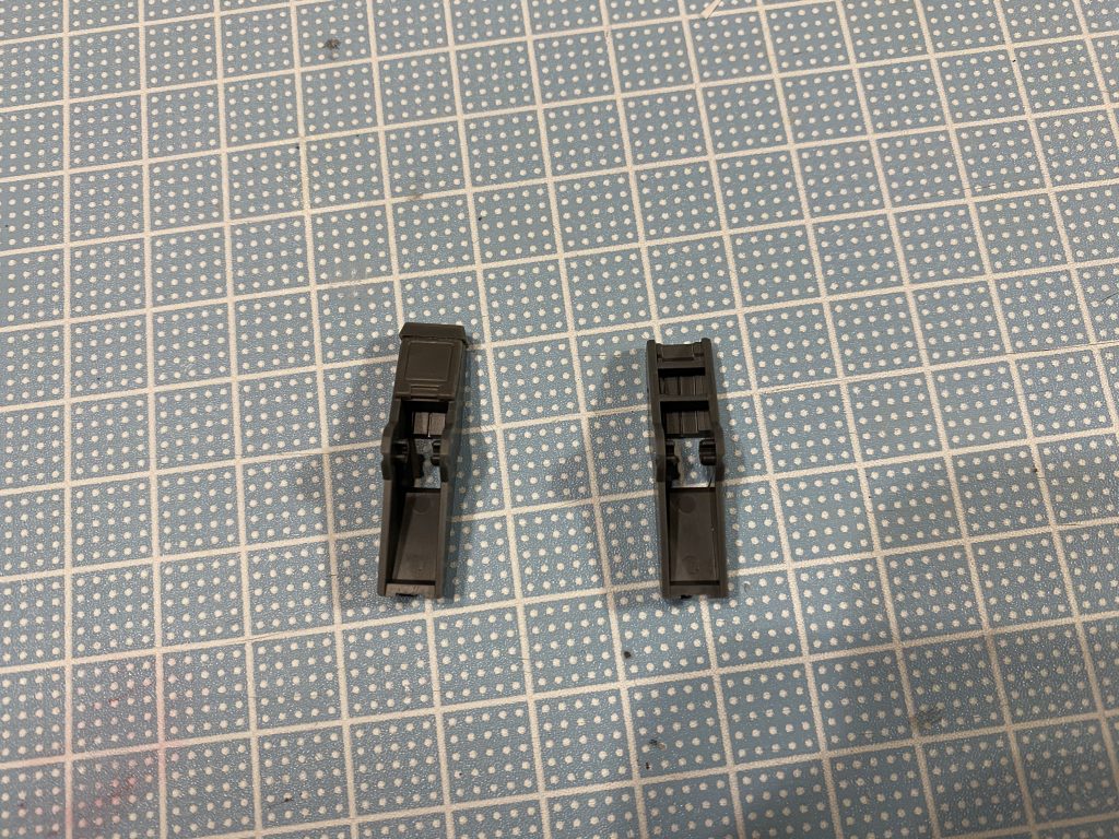 赤く囲んだところにプラ板を貼り付けて可動部分が見えないようにしました