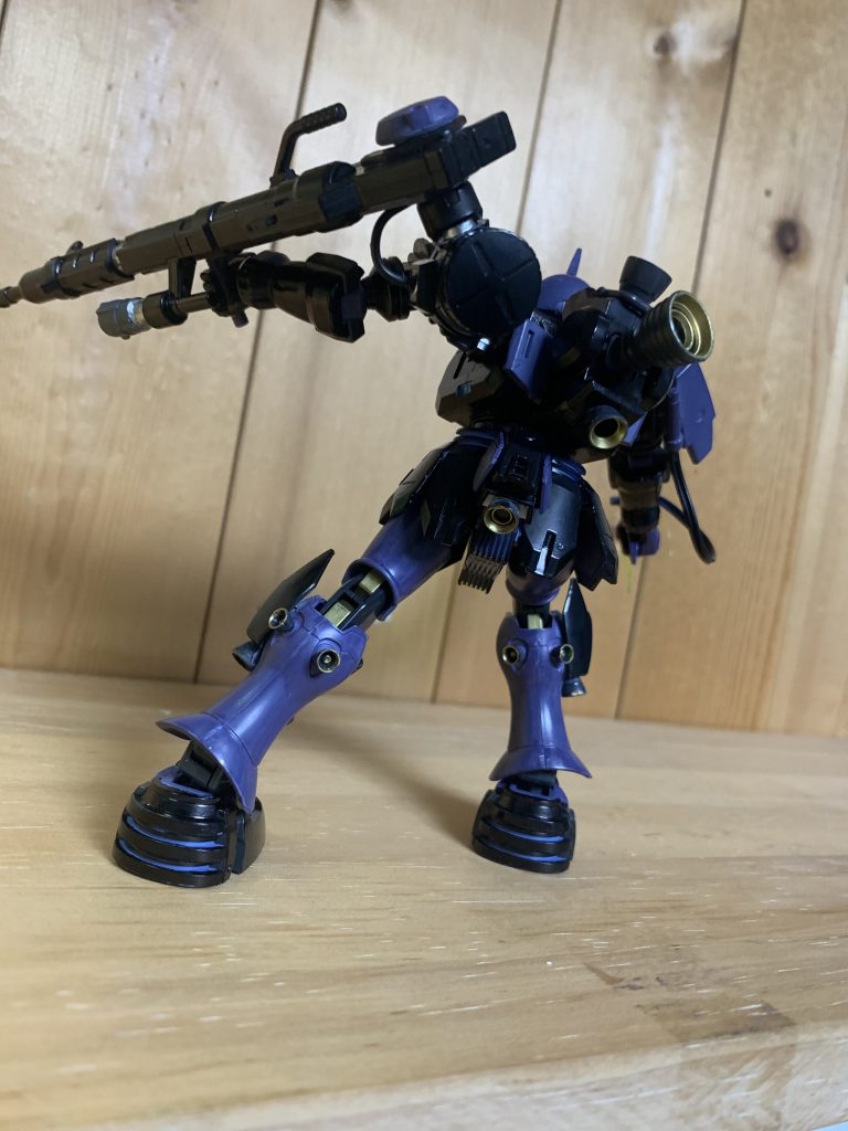 久々に投稿。ゲルググやギャンの開発前、ツィマッド社がMSにビーム兵器の搭載をするため、データ取り用にヅダを改修し実戦投入した機体…….という設定。試作機のため、使いにくい取り回し辛いイメージで改造。