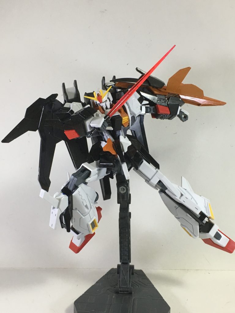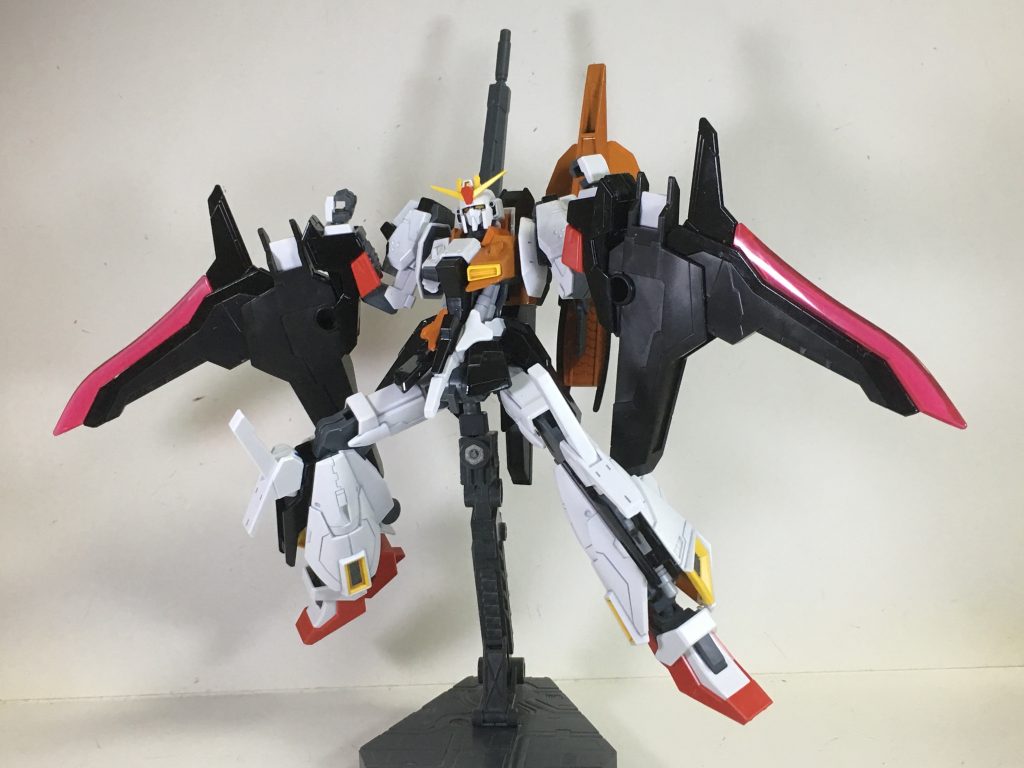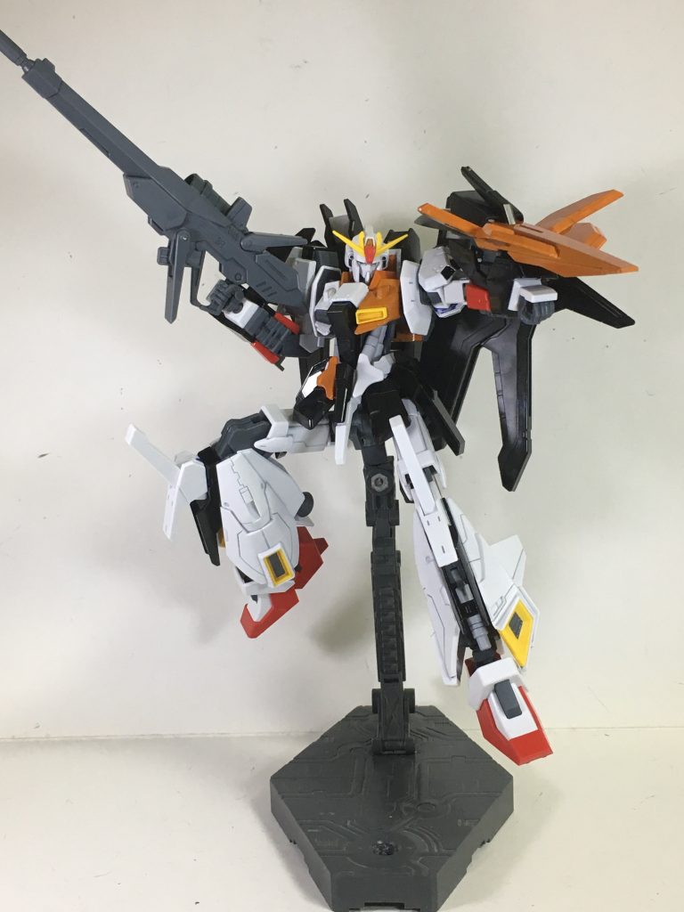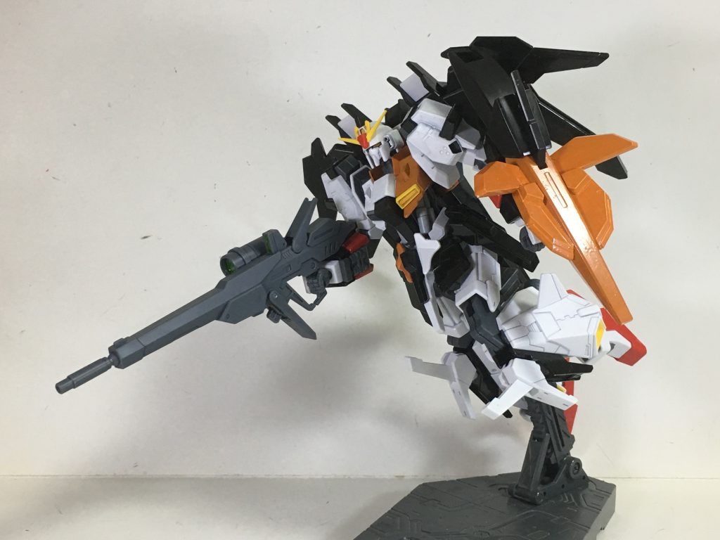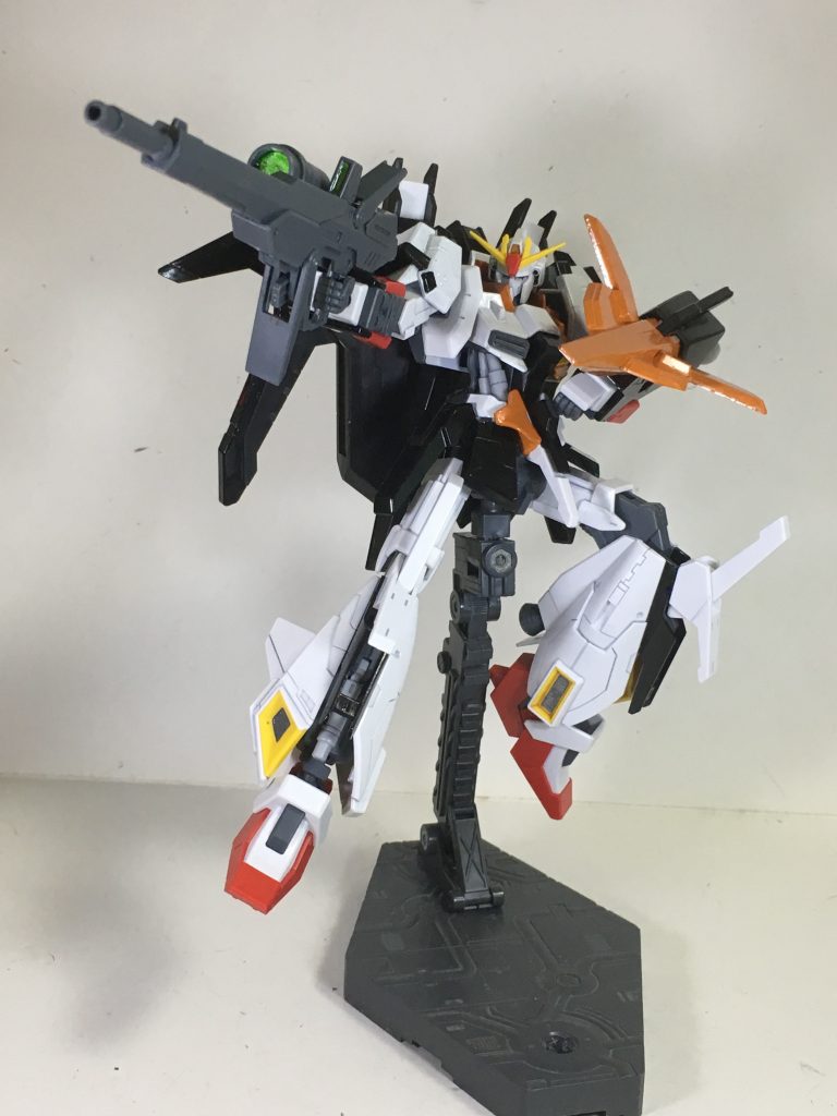 「ライトニングZガンダム」をベースに作っています。これと言った理由はないのですが、このライトニングZがカッコよかったのでこちらの方を採用しました。ただこれだけでは味気ないので、「24thセンチュリーウエポンズ」のGNロングライフル、ショートライフルを付けました。