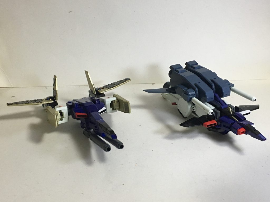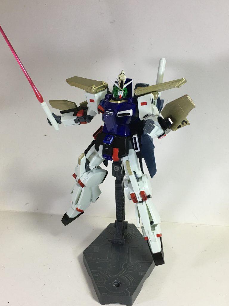 特に大した改造はしていませんが、地味な作業でコツコツと作成、変形時も何の苦も無く普通にできたので成功しました。また、HGZZガンダムには、左持ち手は存在しておらず、ジムシリーズに付属しているライフルを支える平手を拝借し、ビームサーベルが持てるようにプラ板を貼りました。