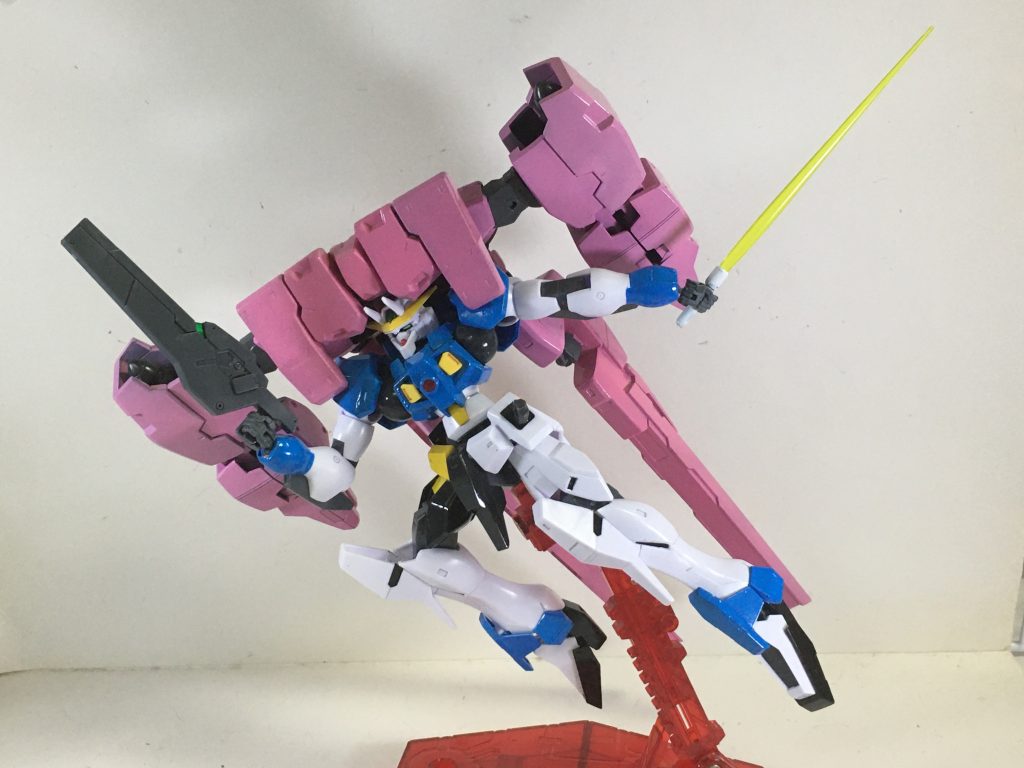 一見大体的な改造をしてなさそうに見えますが、セラヴィーⅡを変形できるように改修しました。また、ラファエル本体にもハンドパーツを「ビルドハンズ」が付けられるよう改造し、ビームサーベルの追加と力を入れました。