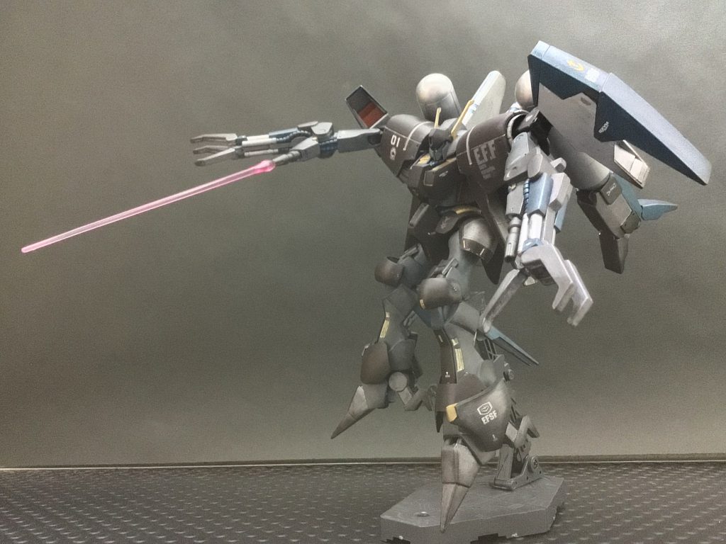 バイアランカスタム2号機への変遷過程という妄想架空設定。ちょい改造とカラーリングをダークな感じに変更しました。水性塗料とエナメル塗料での筆塗り全塗装となっております。