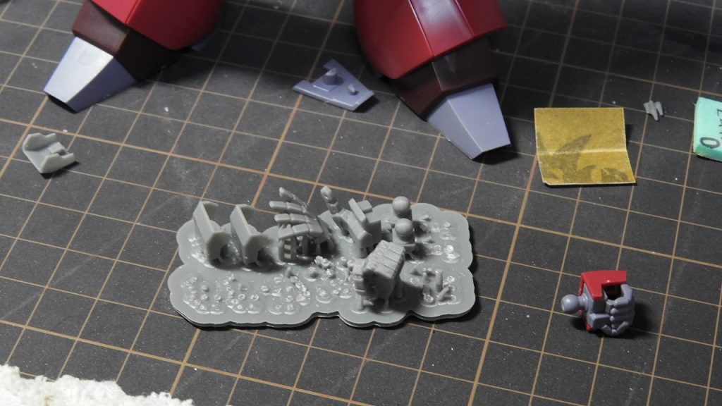 肩アーマーとバックパックの目立つ段差は瞬着盛り付けで修正