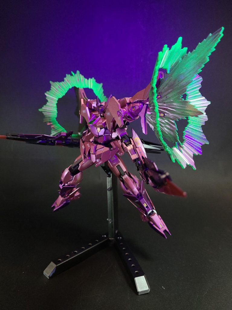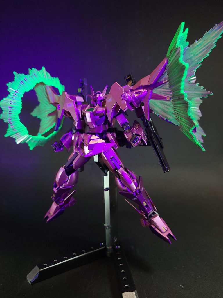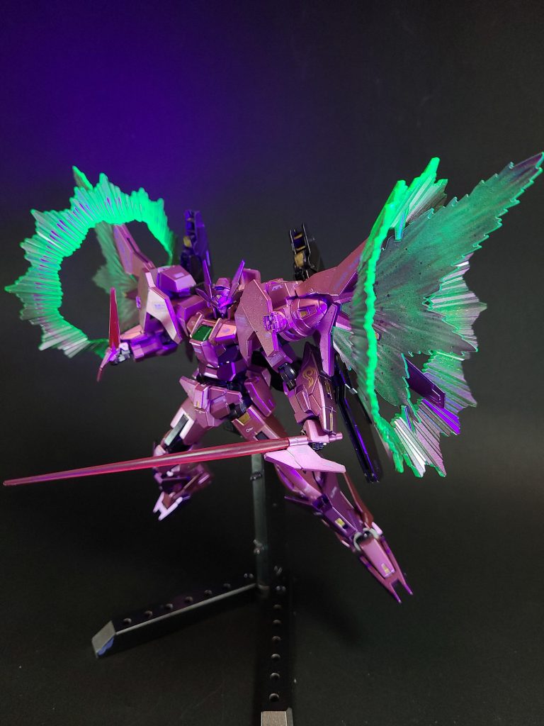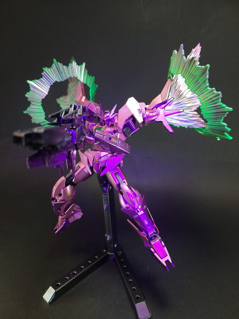 ウイングユニットはトランザム時に粒子加速器としても機能し、一時的に通常のトランザムを凌駕する「トランザムインフィニティ」、粒子の循環速度を限界まで高めた「ハイヤーザンスカイフェイズ」へと進化していく。ただし、性能に比例して機体への負荷も増大するという欠点もある