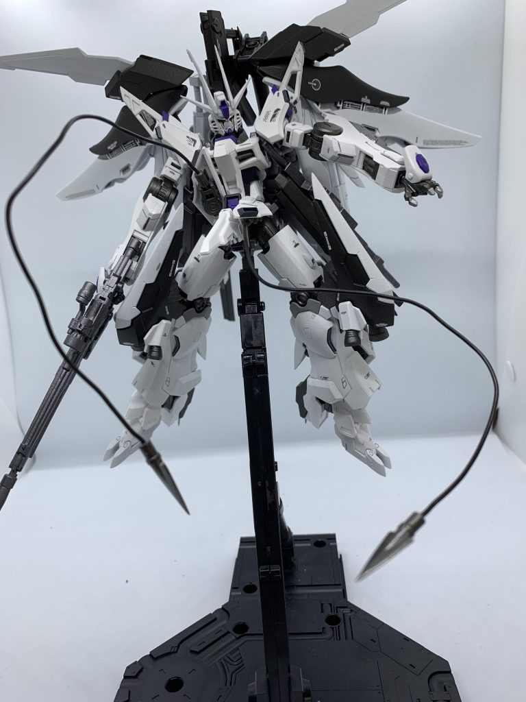 腰部追加ジェネーレーターに装備されている有線式のドラグーン。ビームを撃つことは出来ないが、人工筋肉を応用した液体型ワイヤーにより自由自在な稼働と強靭な耐久性、死角からの攻撃を可能とする。ブレード本体にセンサーと光学カメラが搭載されており、未使用時は後方の情報を、使用時には伸ばした距離分のセンサー範囲を広げて認識することができる。スラスターも付いてはいるが基本的には筋肉と同じ要領で動かしているので重力下・無重力下問わず動かせるのが1番の利点である。未使用時はテールスタビライザー兼後部センサーとしての役割も持つ。