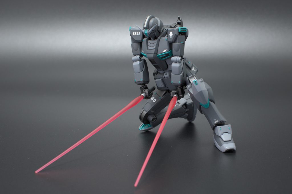 G40は他にはない独特な可動構造をもっていていろんなポーズがとれて素晴らしいです。なのに武装がライフルとサーベルだけというのはもったいないので、ツインビームスピア(柄の延長版)を持たせてあげました。
