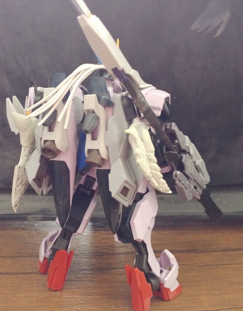 サフ前。基本的に端白星にジャンクパーツや自作したパーツ、武器などをそのまま付けています。自分の中での改造の難易度は割と低めでしたが、どういう風にまとめるかが大変でした…