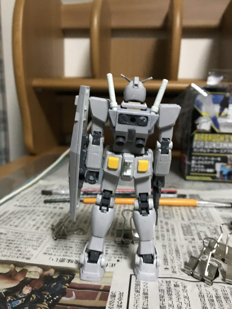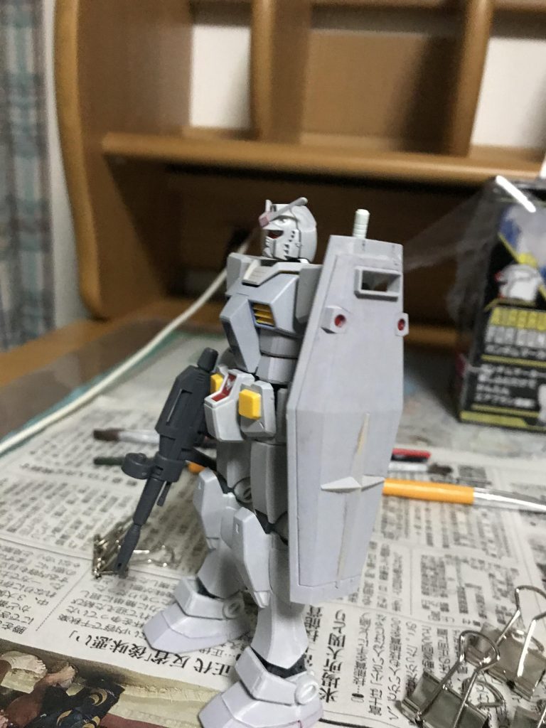今回はHG RX78-2ガンダム(2015年版)を仮面ライダーゼロワンの「リアライジングホッパーフォーム」を元に塗装しました!(今回もサーフェイサー塗装、外装をガンダムマーカーを適量、皿に垂らして、筆塗りでやりました。)