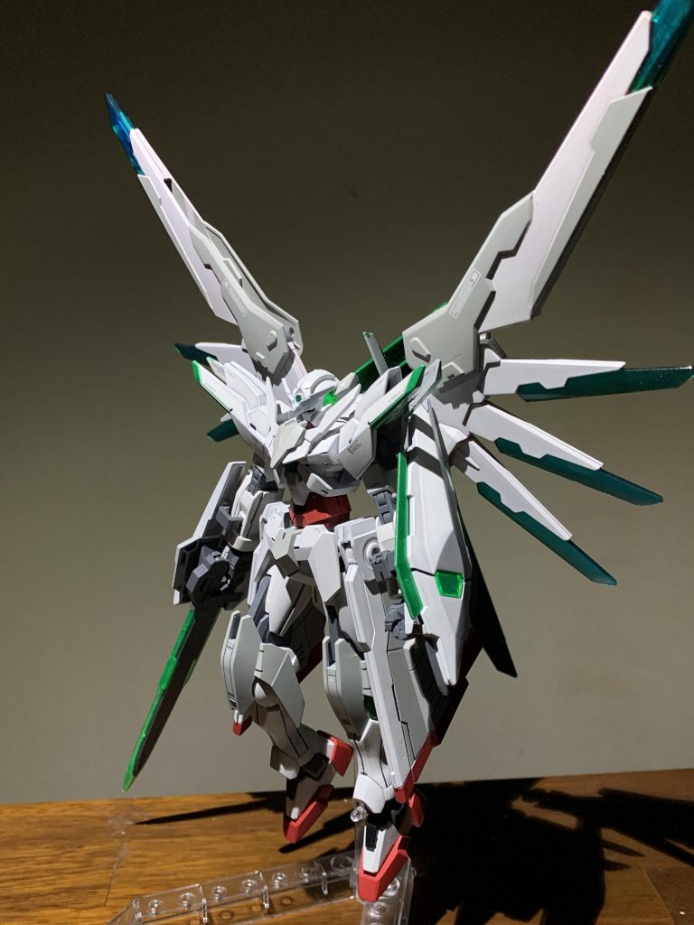 個人的にお気に入りなGNスタビライザーはジャスティスナイトのバックパックユニットを加工して制作しました。ジャスティスナイトのパーツ単体でファフナーに似たスタビライザーが出来た...と思っています
