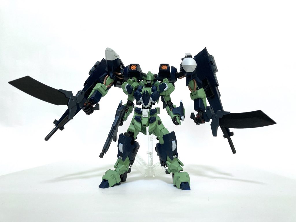 また素敵な機体を!ホントにパーツ使いが上手い。個人的にはヴィダールの膝アーマーの使い方とかむっちゃ勉強になる。あとアームユニットがフライルーなのに、全然そう見えないのが、凄いです。眼福でした。